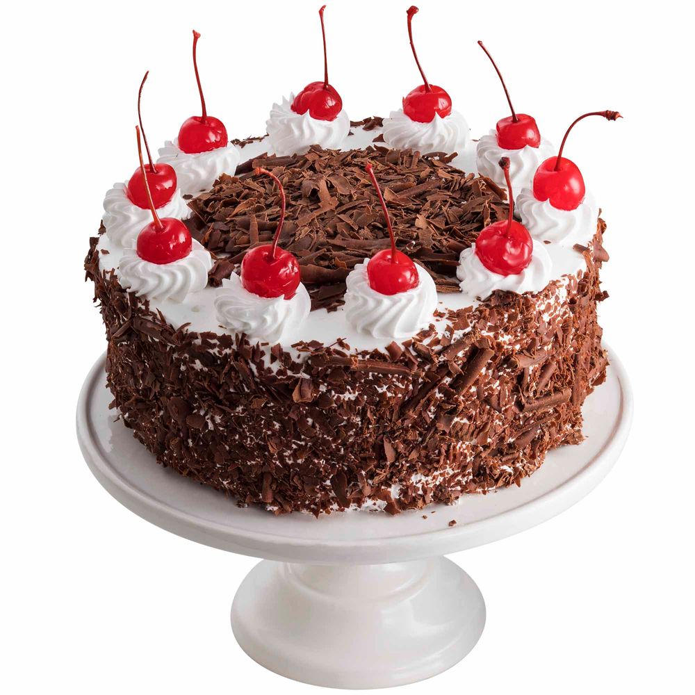 | Composición | Keke sabor chocolate, relleno de fudge y mermelada de sauco. Cubierta con crema chantilly blanca. Decorada con virutas chocolate y cerezas |