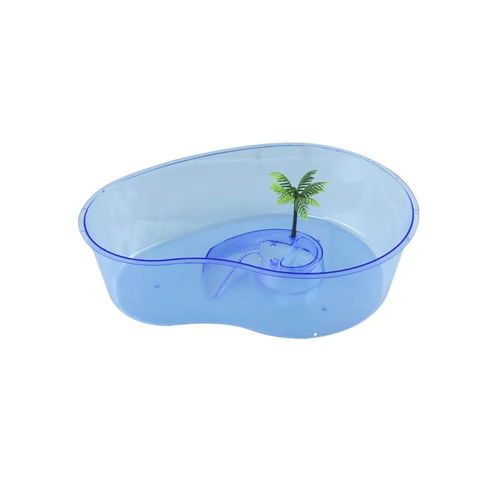 Tortuguero de acrílico tipo isla pequeño con rampa y palmera