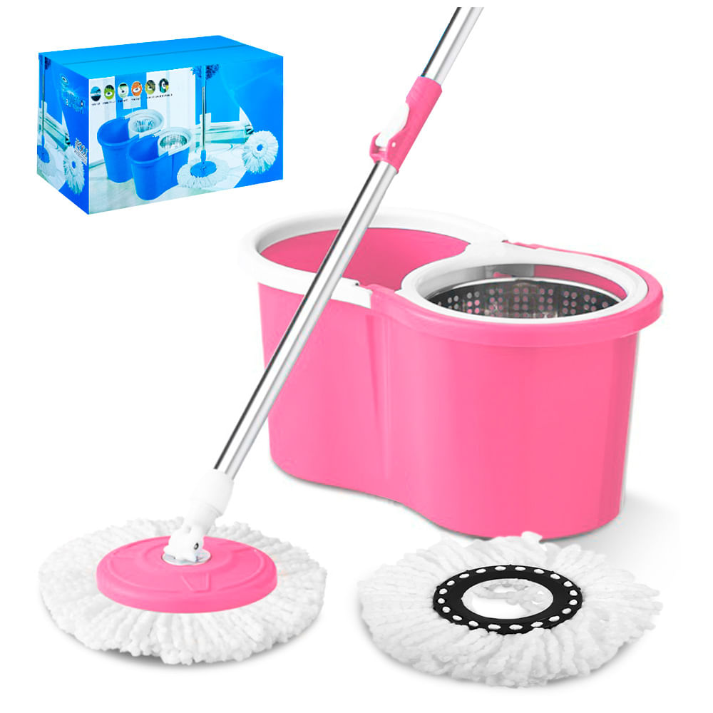 Trapeador con Escurridor Giratorio Automático 2 Mopas Rosado 88S