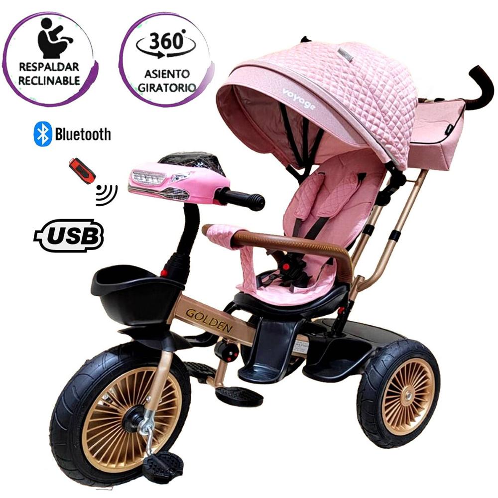 Triciclo Asiento Giratorio Voyage GOLDEN con Tela UV Rosado