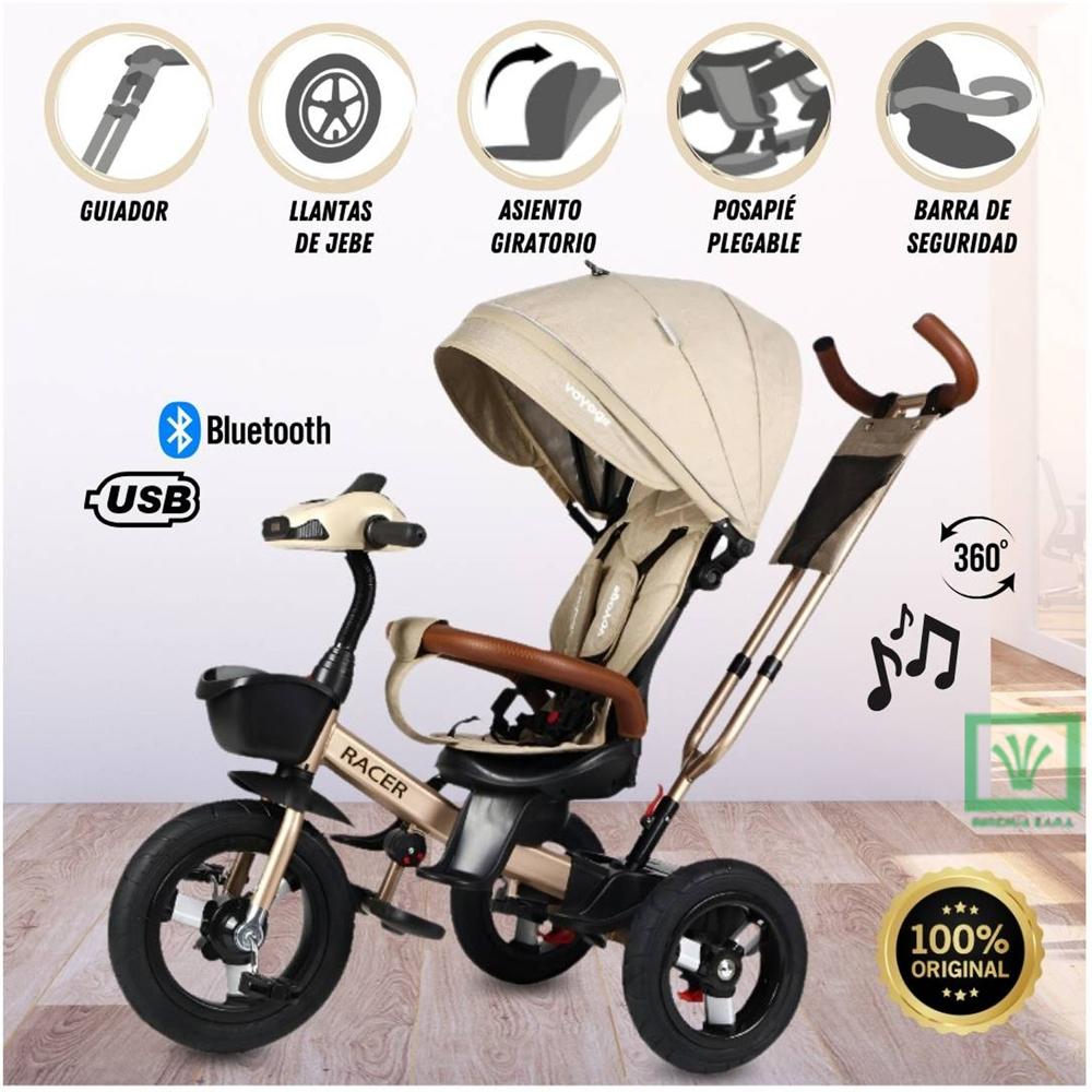 Triciclo Guiador para Niños Usb y Bluetooh «LAURENT» Beige