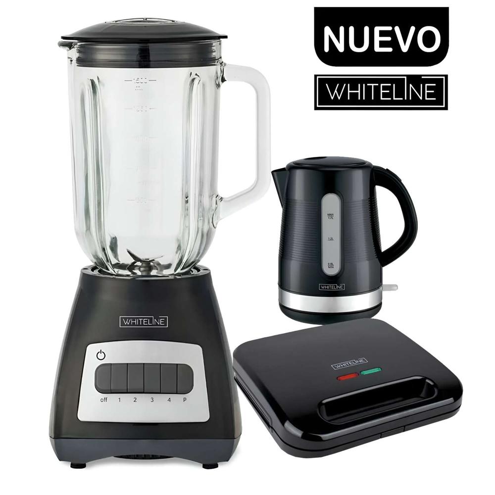 Tricombo Whiteline Licuadora Vaso de Vidrio +Hervidor y Sandwichera