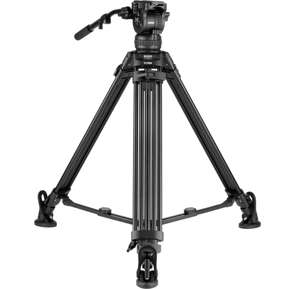 Trípode de Video Magnus REX VT-6000 de 2 Etapas con Cabeza Fluida - Soporta hasta 17 Libras, Placa d