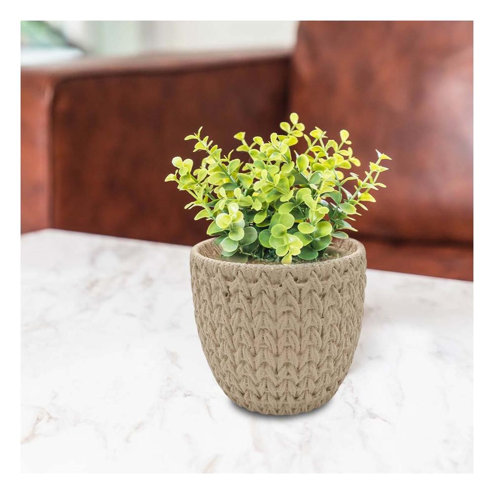 Vasija Minimalista Curva Cemento 12x12cm Crema Tejido V Y+Papel Regalo