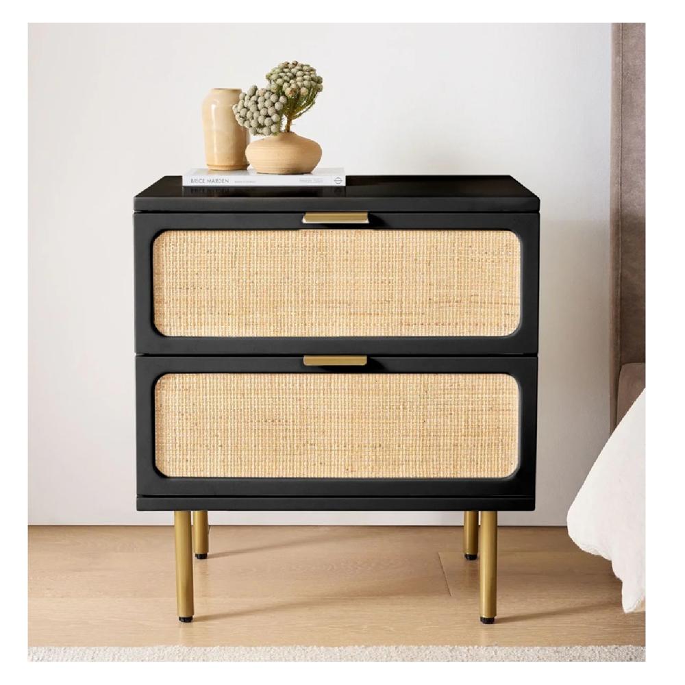 Velador Mesa de Noche Abigail con Ratán color Negro 2 cajones TU MESITA