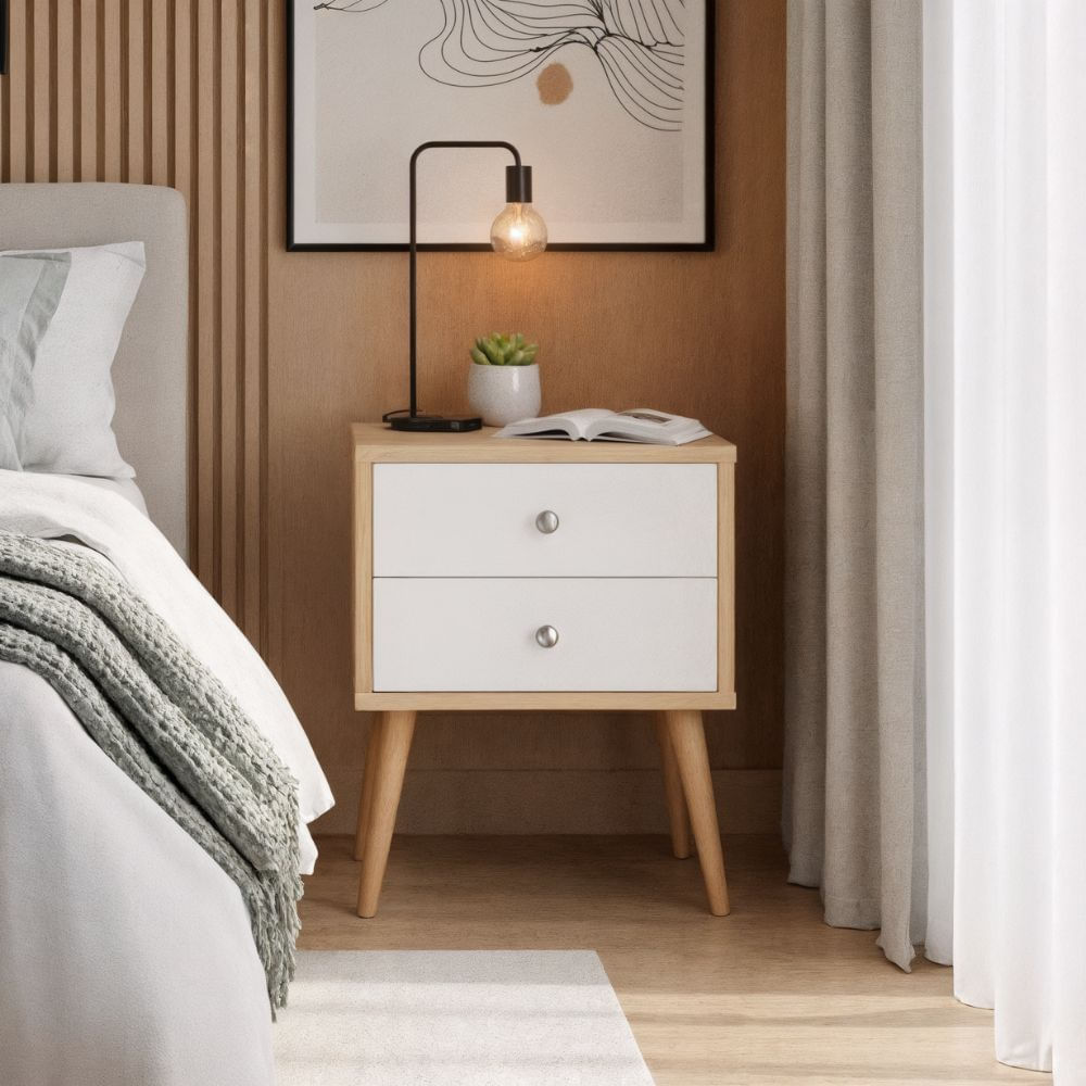 Velador Mesa de Noche Lauren Marrón y Blanco - Masiva Home