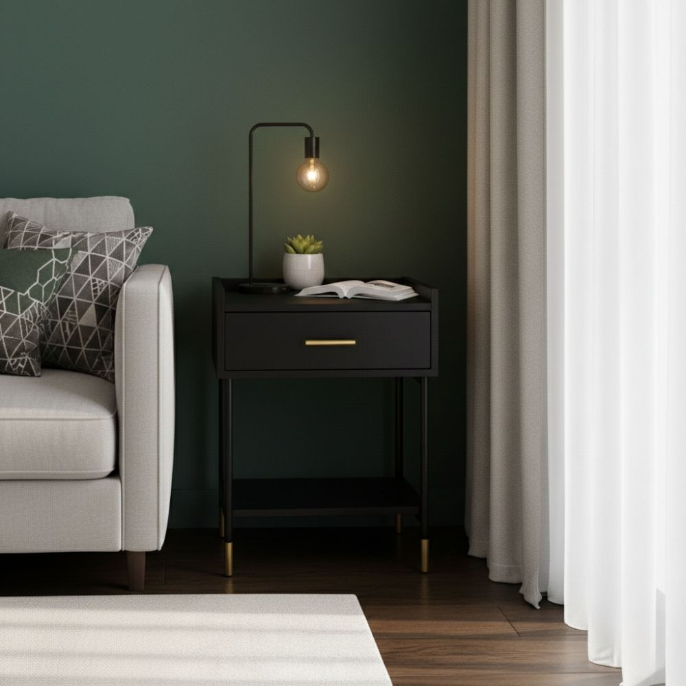 Velador Mesa de Noche Tedy Negro - Masiva Home