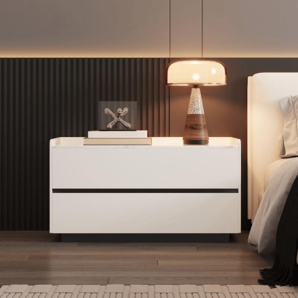 Velador Tesalónica 2 Cajones - Beige y Negro