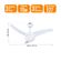 | Características | Ventilador de techo conformada por ABS, cuenta con 3 aspas diagonales y una bola de vidrio para colocar 2 focos con rosca E27, tiene un sensor que interactua con el control remoto para activar el motor y la luminaria, diseñado para recircular el aire de un ambiente, además cuenta con un switch para cambiar el setido de las aspas. |