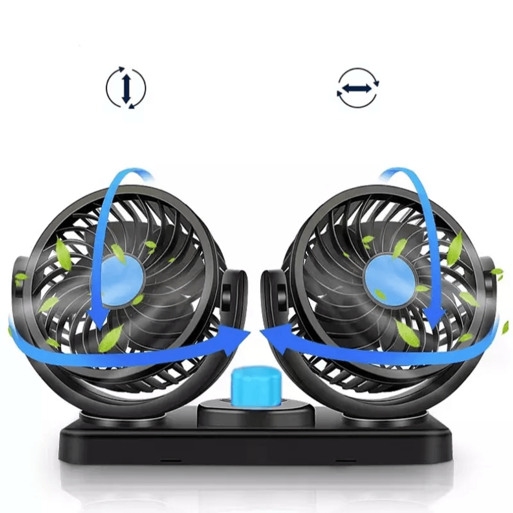 Ventilador Dual 360° para Auto Camioneta Turbo con Base Giratoria - Ventilador Doble Cabezal 360° para Auto Camioneta Coche
