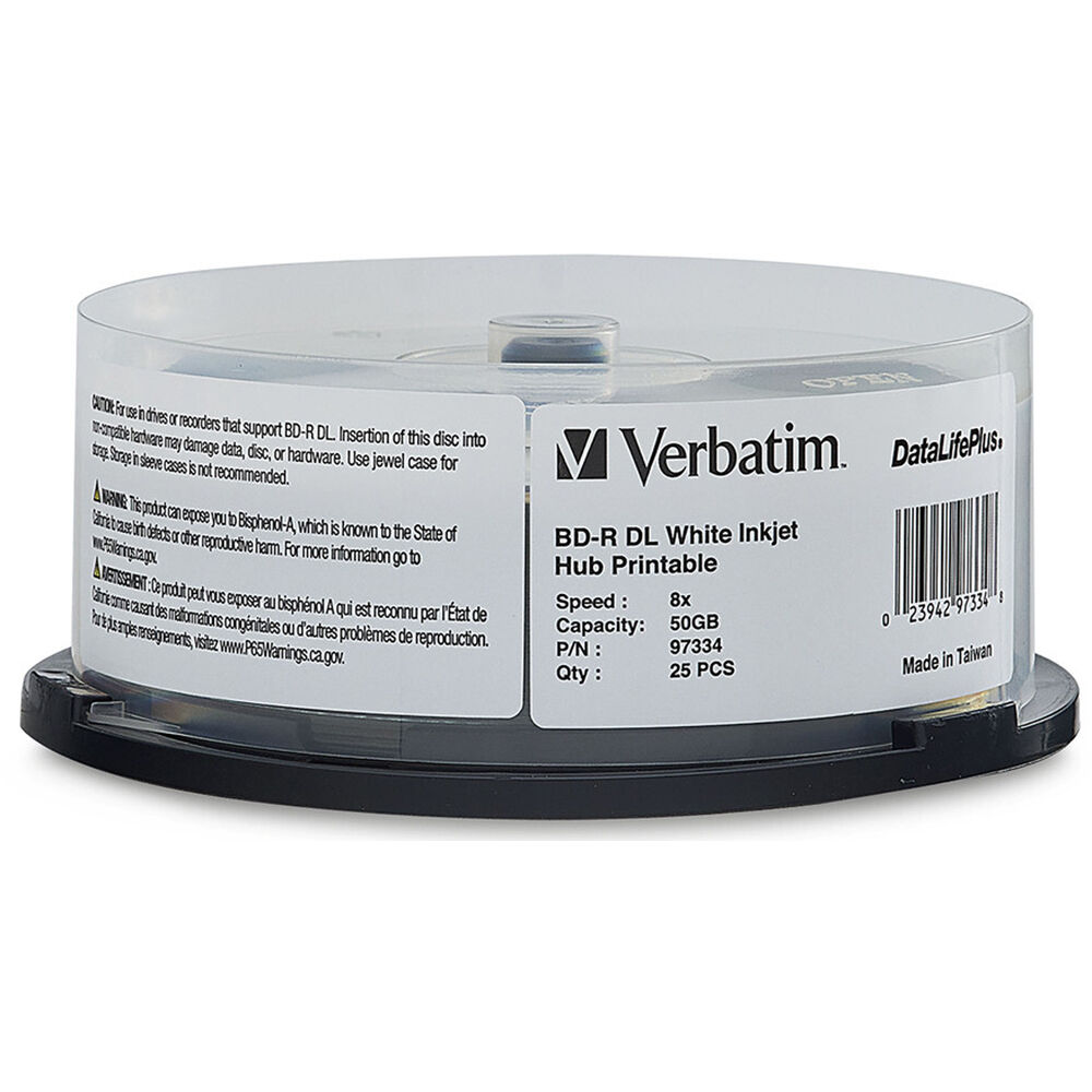 Verbatim 50GB 8x Blu-ray Disc (Paquete de 25) - Disco Doble Capa, Impresión en Hub Blanco, Velocidad