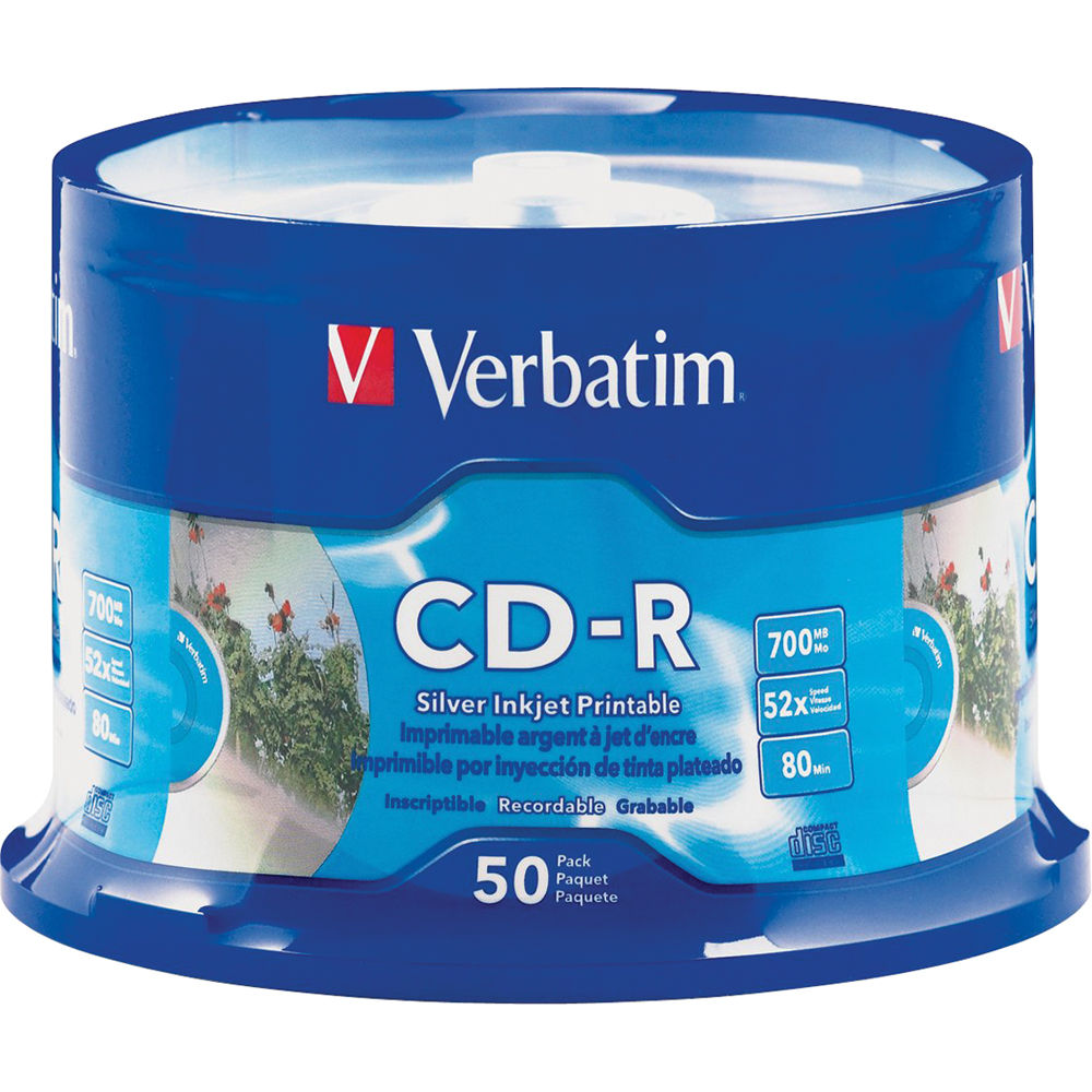 Verbatim CD-R 700MB 52x Superficie Plateada para Impresión por Inyección de Tinta - Paquete de 50 Di