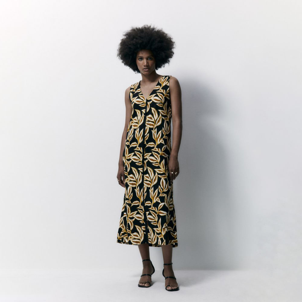 Vestido Midi Rayas Sfera Mujer Amarillo Mostaza