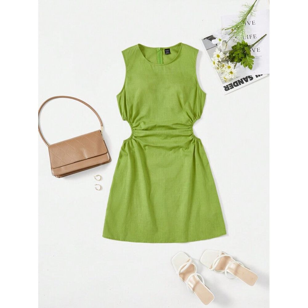 Vestido Shein Ezwear Verde con Abertura Fruncido Lateral