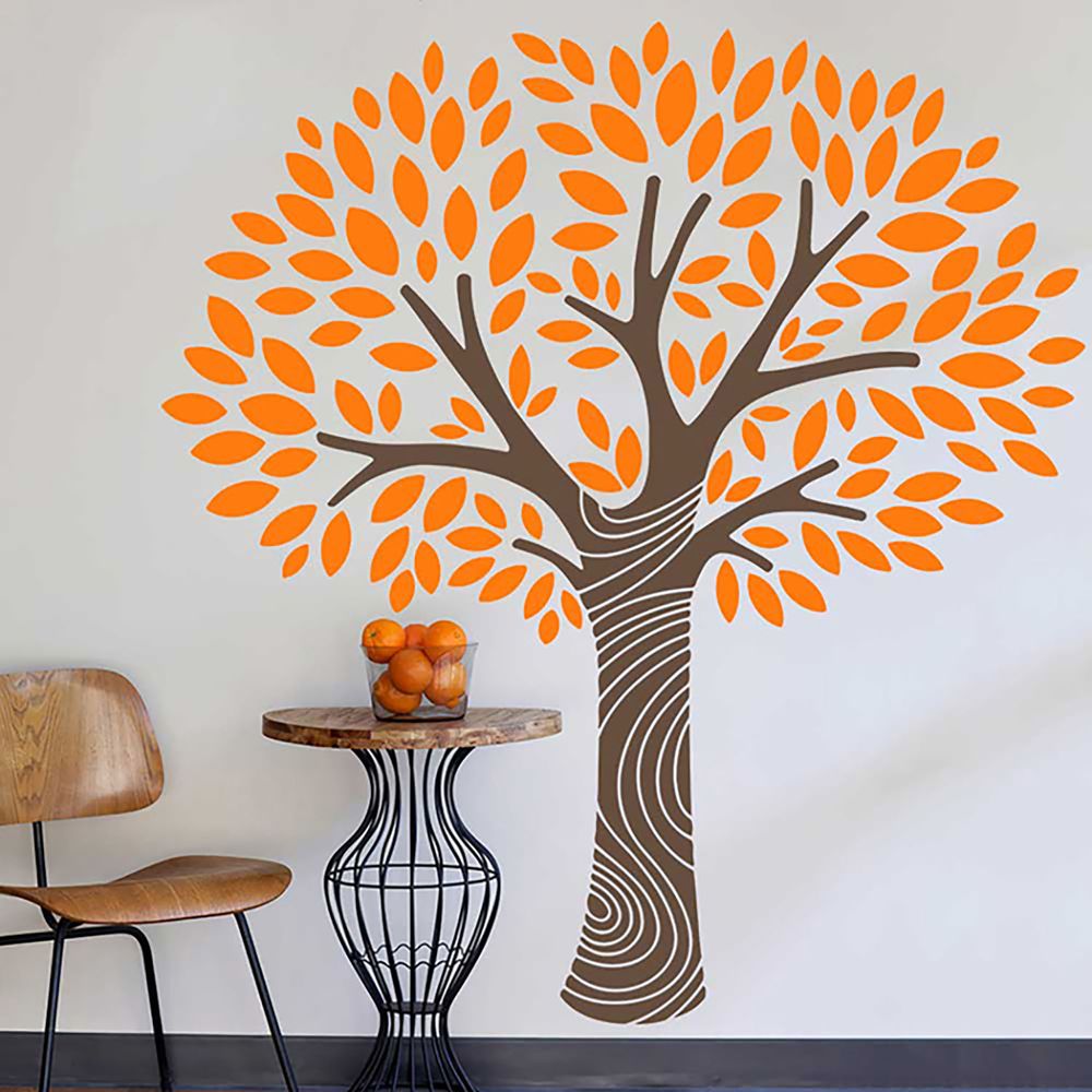 Vinilo Árbol Frondoso Naranja Marrón Mediano Sticker Pegatina Viniles