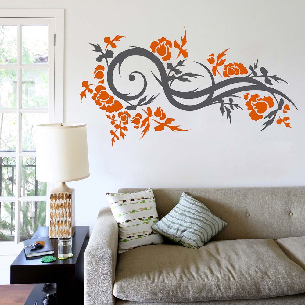 Vinilo Hojas y Curvas Gris Oscuro Naranja Mediano Sticker Pegatina Viniles