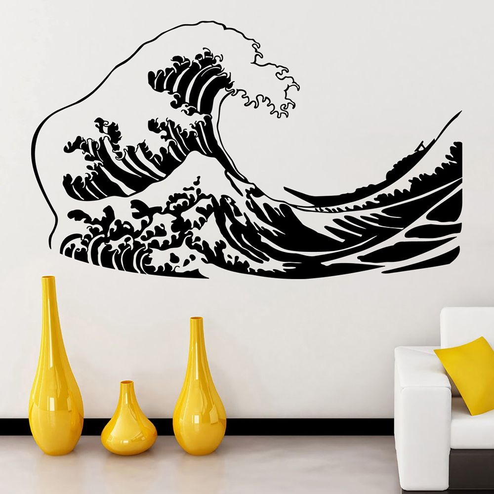 Vinilo La Gran Ola de Kanagawa Negro Mediano Sticker Pegatina Viniles