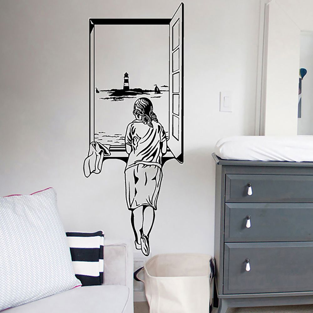 Vinilo Muchacha en La Ventana Dalí Negro Pequeño Sticker Pegatina Viniles