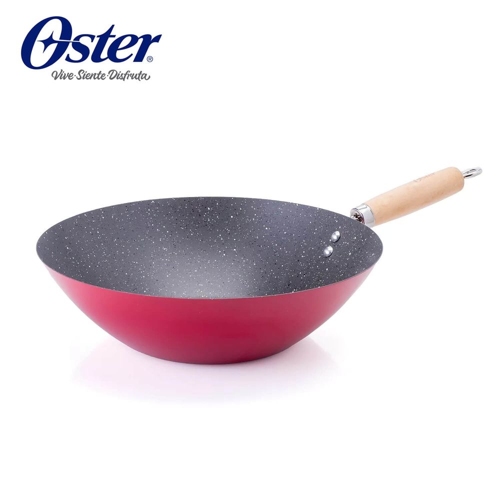 Wok de Acero al Carbono 30cm Oster Denali Rendimiento Legendario Diseñado para Durar Color Rojo