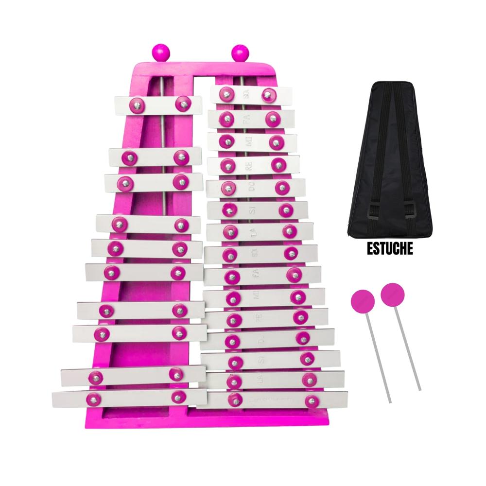 Xilófono Metalófono Cromático de 2 Octavas de 25 Notas ROSADO