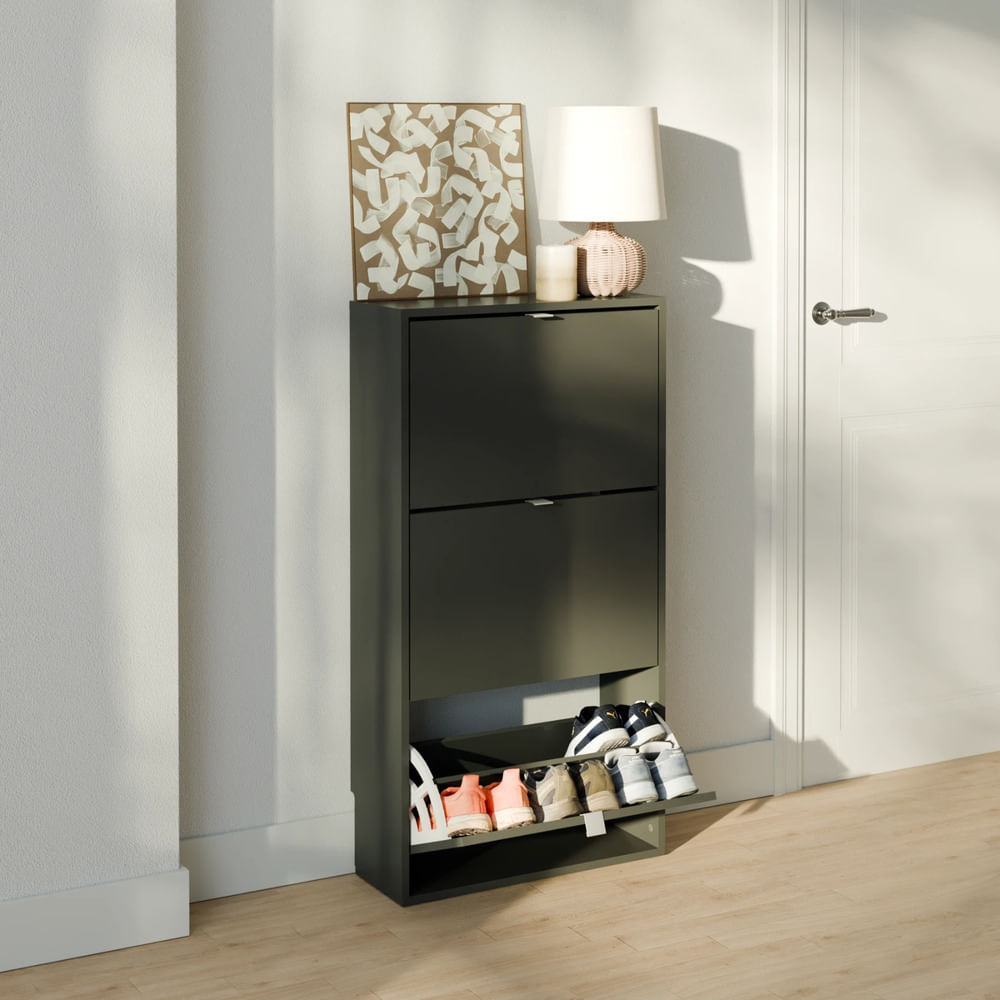 Zapatera con Corte para Zócalo Lucía 3 Puertas Negro RR MUEBLES