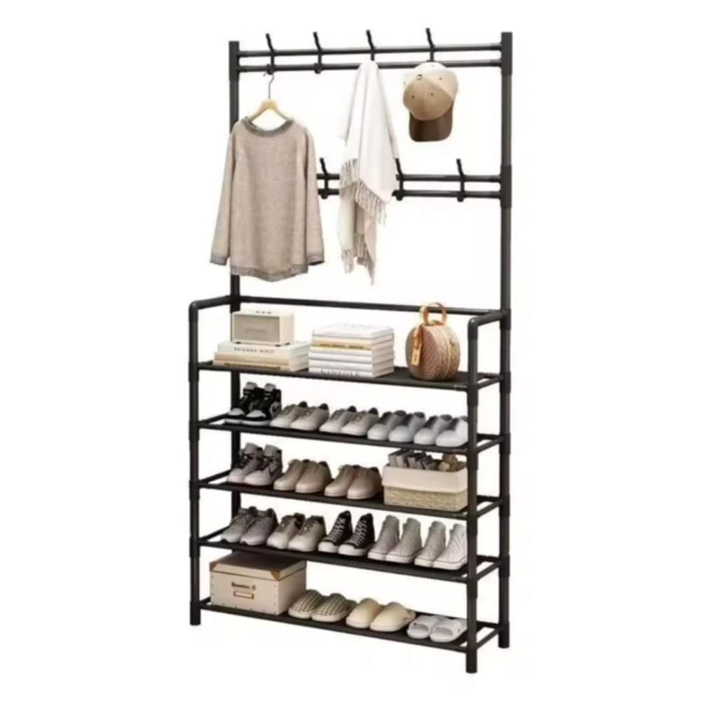 Zapatera Organizador de Calzado Estante 5 Niveles Con Perchero Negro