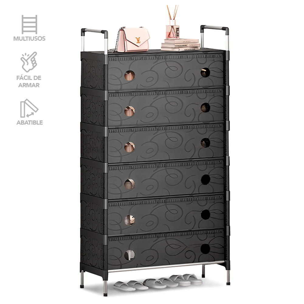 Zapatero de 6 Niveles Elegante Desmontable Negro Z18