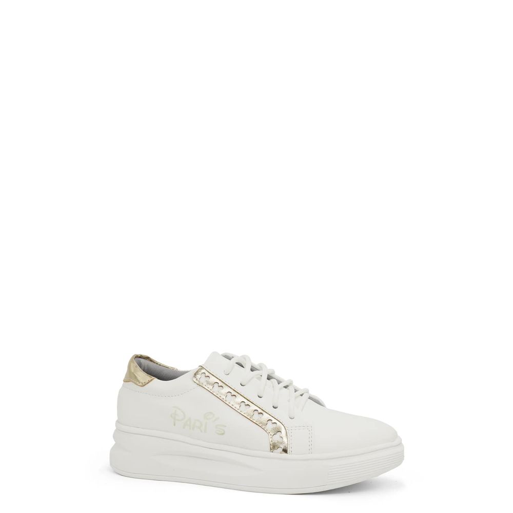 Zapatilla Escolar de Cuero para Niña Par&ss MV22-1945 Blanco Dorado
